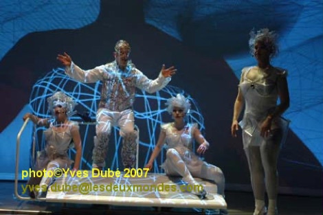 Alternate Visions, produced by Chants Libres, the lyric creation company, invites the audience to witness an alternate vision of love.This bilingual opera presentation is truly an encounter mediated by cyberspace. Taking the subject matter of computer dating as its focus,Alternate Visions addresses the internet's power to create personae and perfection. In a space where musical styles merge, real and virtual universes collide, robotics and intelligent skin mingle...what happens to human carnal relations?
